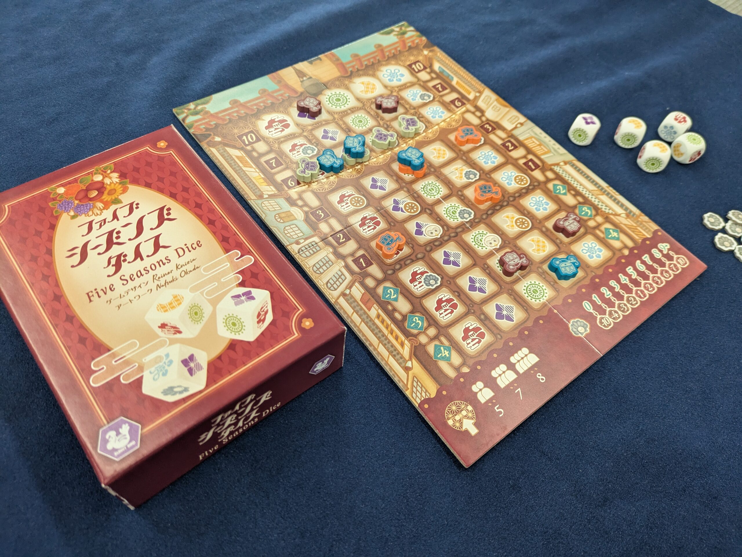 2008年ドイツ年間ゲーム大賞受賞の名作『ケルト』をライトに楽しめるようにした派生作のひとつ『ケルトタイル:ダイス』を日本オリジナルでリメイクしたタイトルが『ファイブシーズンズ』です。