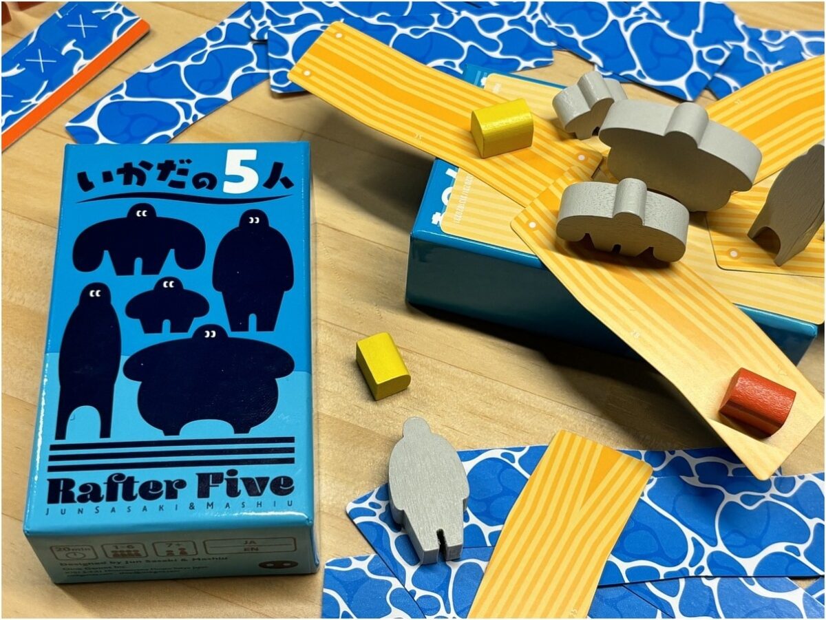 どんどん広がっていくいかだ。次々と置かれ、そして動かされる人型コマ。もう無理だー!……というところから意外にも踏ん張れたり、安全かと思っていたら雪崩をうつように崩れてしまったり、と予想もつかない展開で、大盛り上がりとなるでしょう。