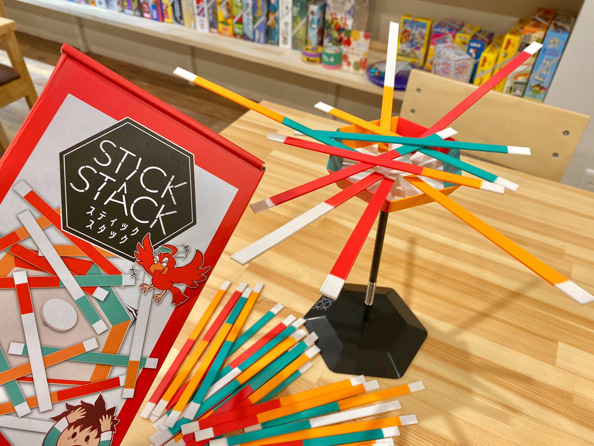 すごろくやさんの「自称6歳以下ゲーム会」。3つ目は「スティッキー」。シンプルだけど、真剣に棒を抜くのが面白い。残り3本まで行きました! #す箱 pic.twitter.com/nhHyzKyK4S