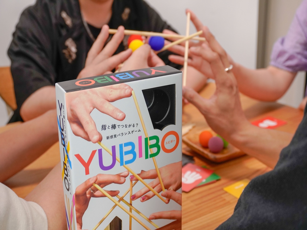 複数のプレイヤーの指同士で棒を支えていく協力型のバランスゲーム。カードの指示に従い、プレイヤー同士の指を棒でつないでいきます。本数が多くなってくると、アクロバティックな指のポジションを求められることも……? お互いの指の動きや、力の向きを感じつつ、与えられた棒を落とさないようにみんなで支えることができるでしょうか。