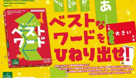 新作ゲームカレンダー お題に一番ふさわしい言葉を発表しよう! みんなでベストワード 2025/12/11 SHARE 𝕏 ポスト シェア はてブ Google+ Pocket LINE 発売日:2025年12月上旬 プレイ人数 3〜9人 / プレイ時間 15分 / 対象年齢 7歳〜¥1,980(税込) 参考 詳しくはこちらからhttps://broad.tokyo/news/44785