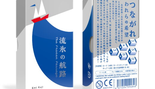 2026年5月29日(ゲムマ2026春先行販売)発売予定 互いの手を予想しつつ協力して航路を横断 流氷の航路 プレイ人数 1〜4人 / プレイ時間 約20分 / 対象年齢 8歳〜¥2,970(税込)/ゲムマ特別価格¥2,500(税込) NEW