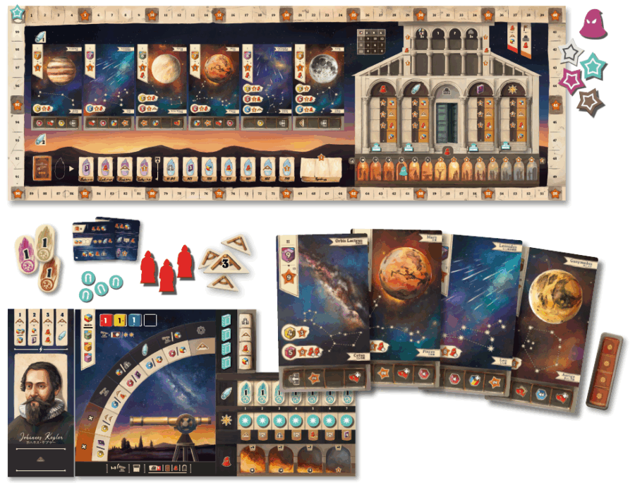 この時代、ヨーロッパでは新たな科学的アイデアが取り入れられてきた。見識のある天文学者は、肉眼での天空の観察から初の望遠鏡を使用しての観察へと変化していった。そんな彼らと共に、畏敬の念に満ちた天体の観測を行おう! だが、注意をしなくてはならない──教会は警戒を続けている。異端の考えは厳しい罰を受けることになりかねない……。
