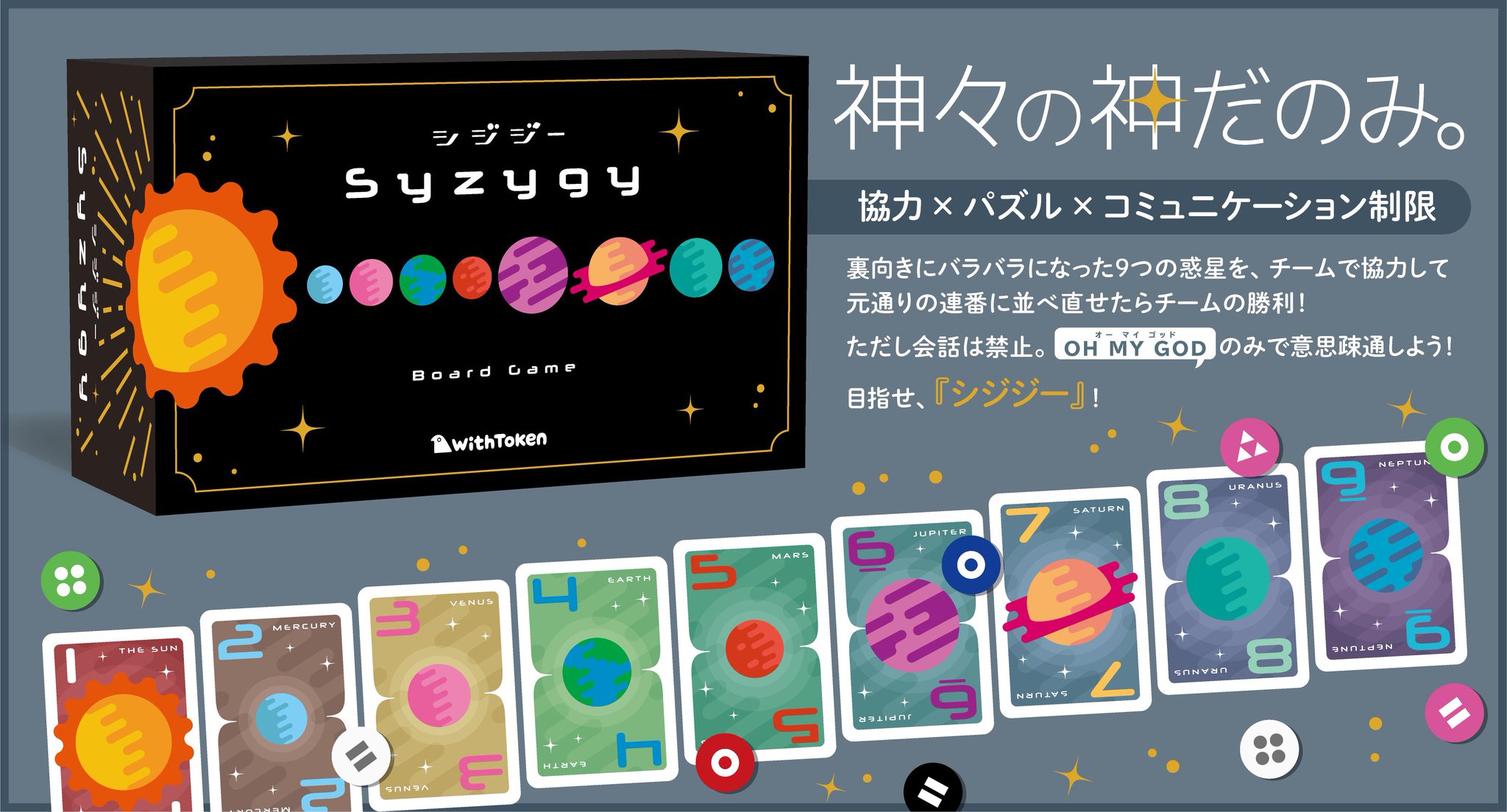 惑星が描かれた9枚のカードをウラ向きにして一列に並べます。自分の手番では、カードを1枚をこっそり見てから場所を移動させます。ルールは3つあって、移動させる時に一番端には動かせません。一度見たカードはもう見れません。大事なルールが、会話禁止でカードを見た時に「オーマイゴッド」の一言しか喋れません。全員が4回移動させたらカードを表向きにして、正しく並んでいたら成功です。やることは単純ですが、惑星を動かしているというのがダイナミックで楽しく感じますね。