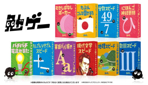 株式会社TRYBEは、株式会社キッズプロジェクトと共同で、知育から大学・研究レベルまであらゆるジャンルの勉強で対決するカードゲームシリーズ『勉ゲー』全10タイトルを12月1日に発売する。一般発売に先駆け、11月22日・23日開催のゲームマーケット2025秋で各シリーズ限定50個の先行販売を実施。