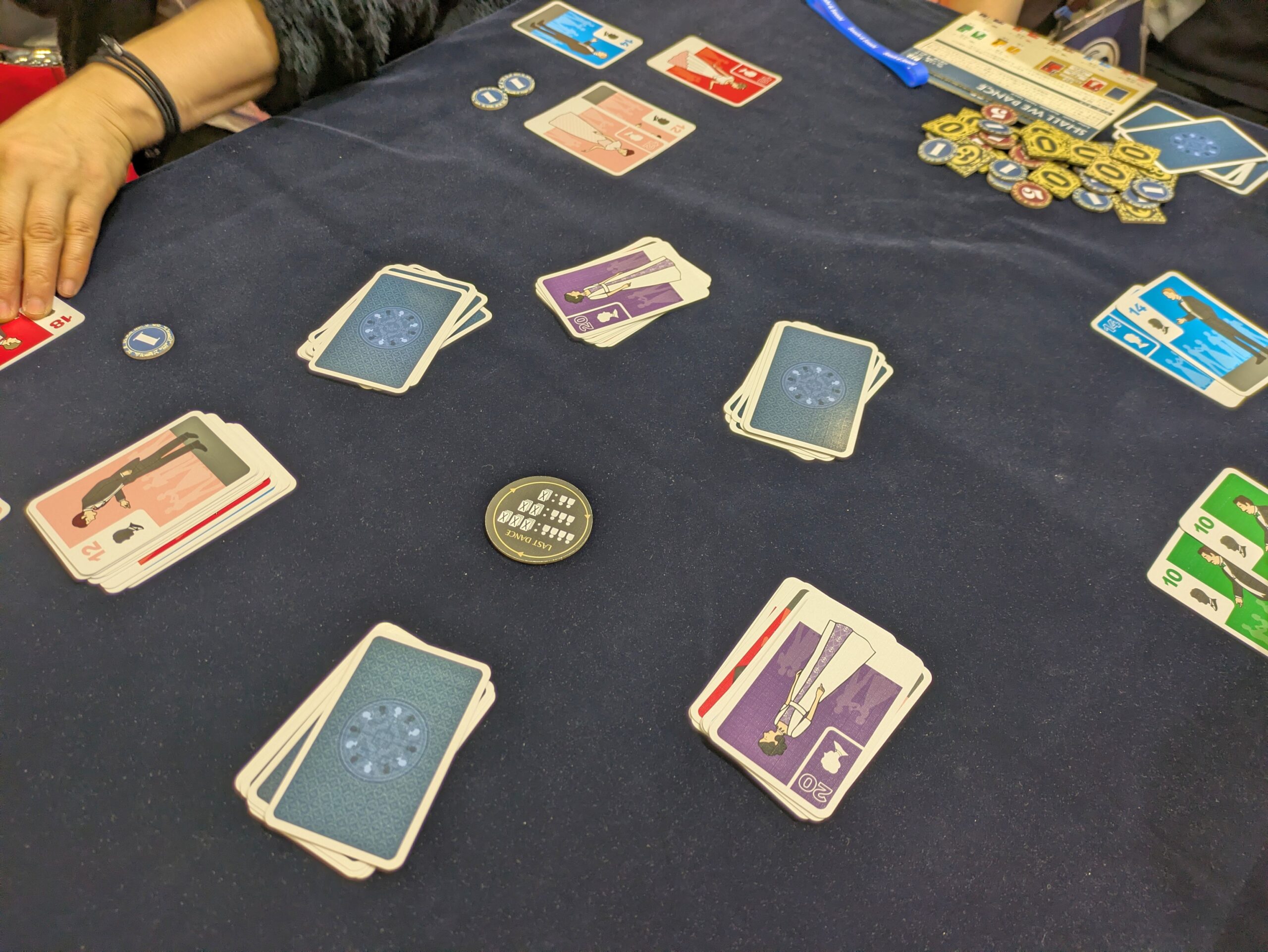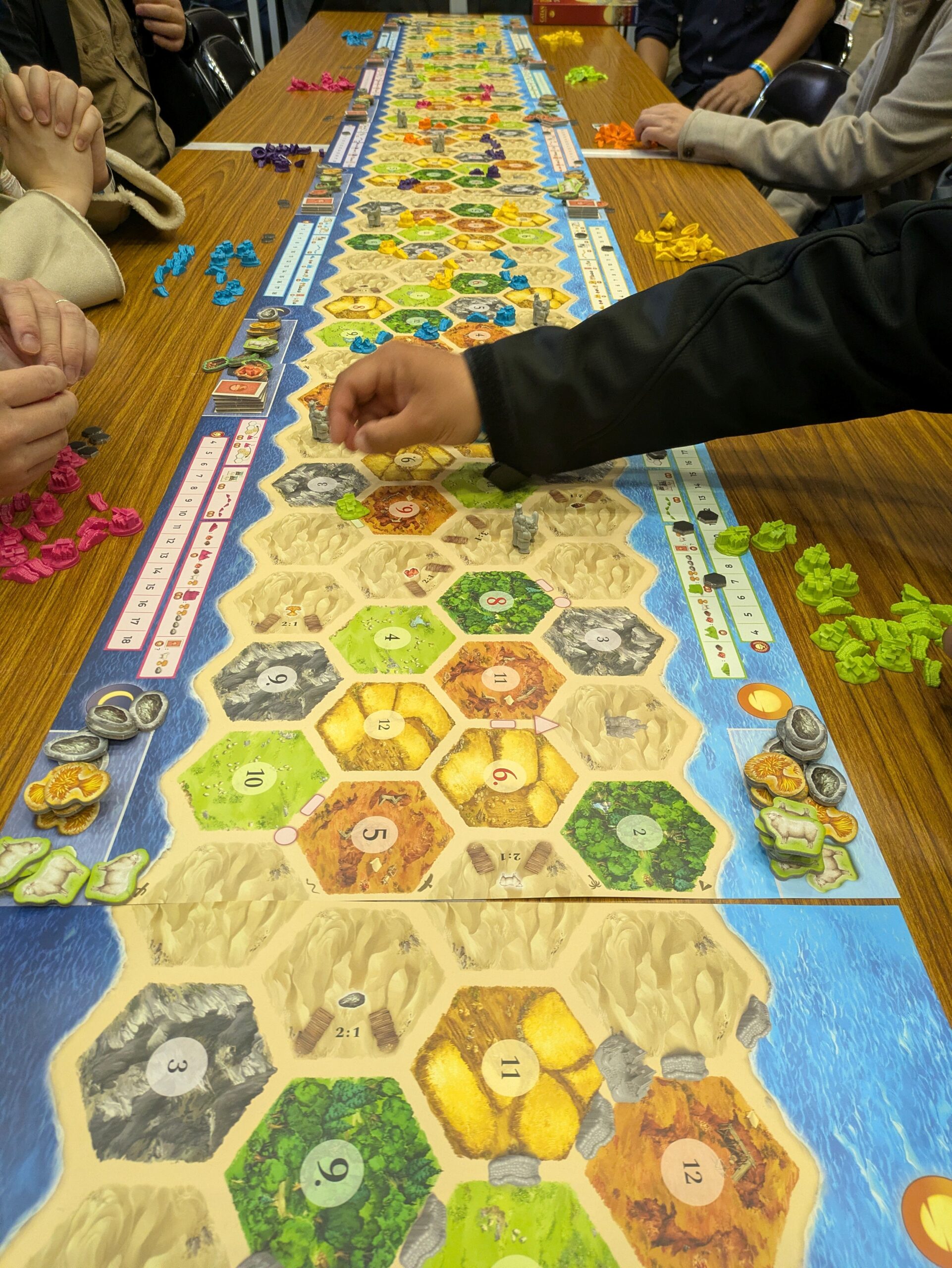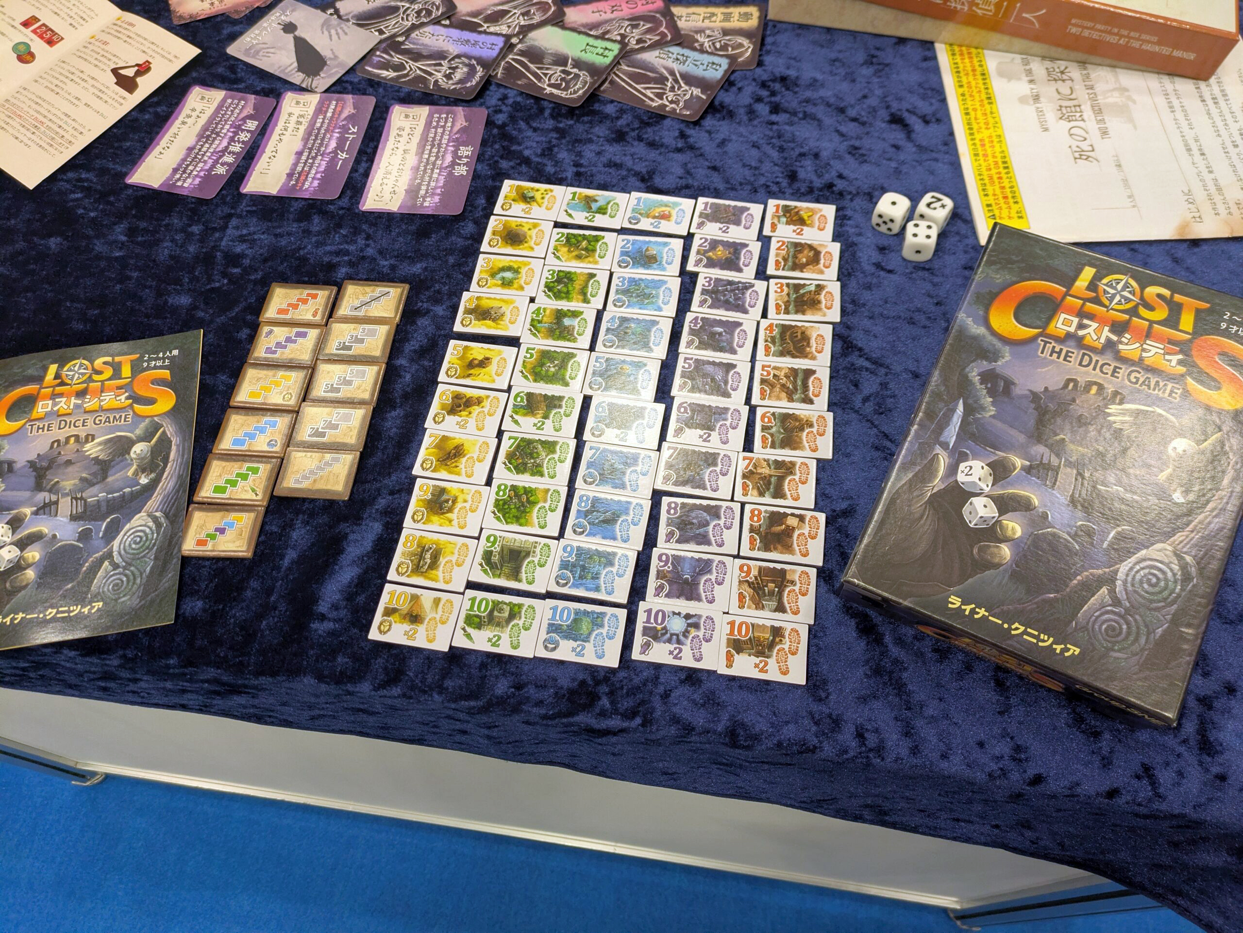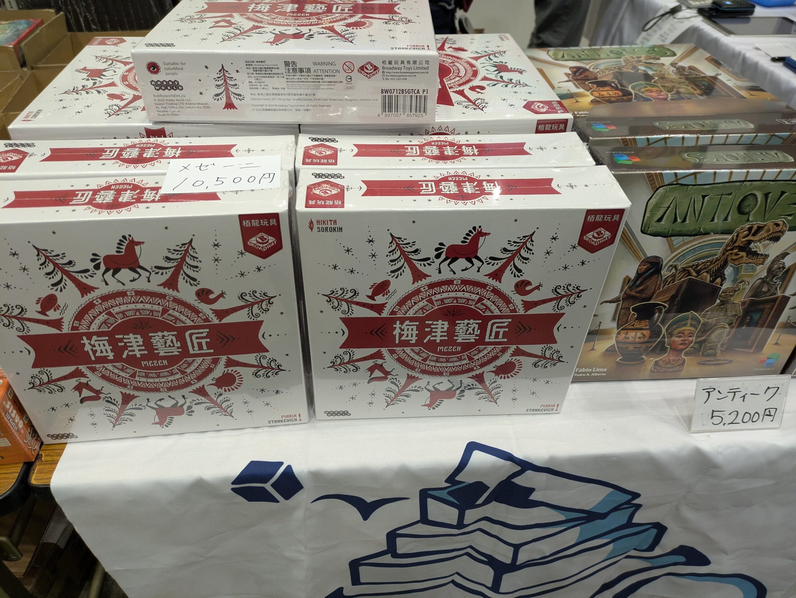 11月14日に発売された『HITSTER』を個数限定で販売。音楽を聴いてタイムラインに並べる新機軸のタイトルで、ジーピーブースでは10曲だけ楽しめる体験版が配布されたが、大変な人気でこちらも品切れに。ブース内にDJスペースを模した試遊エリアを設置し、ビッグサイズのカードを使用した同作の試遊も大盛況。次々と流れる有名J-POPの名曲に足を止める客も多く見受けられた。また、連結することで何人でもプレイできる『カタンコネクト』の限定販売と試遊も行われ、注目を集めていた。