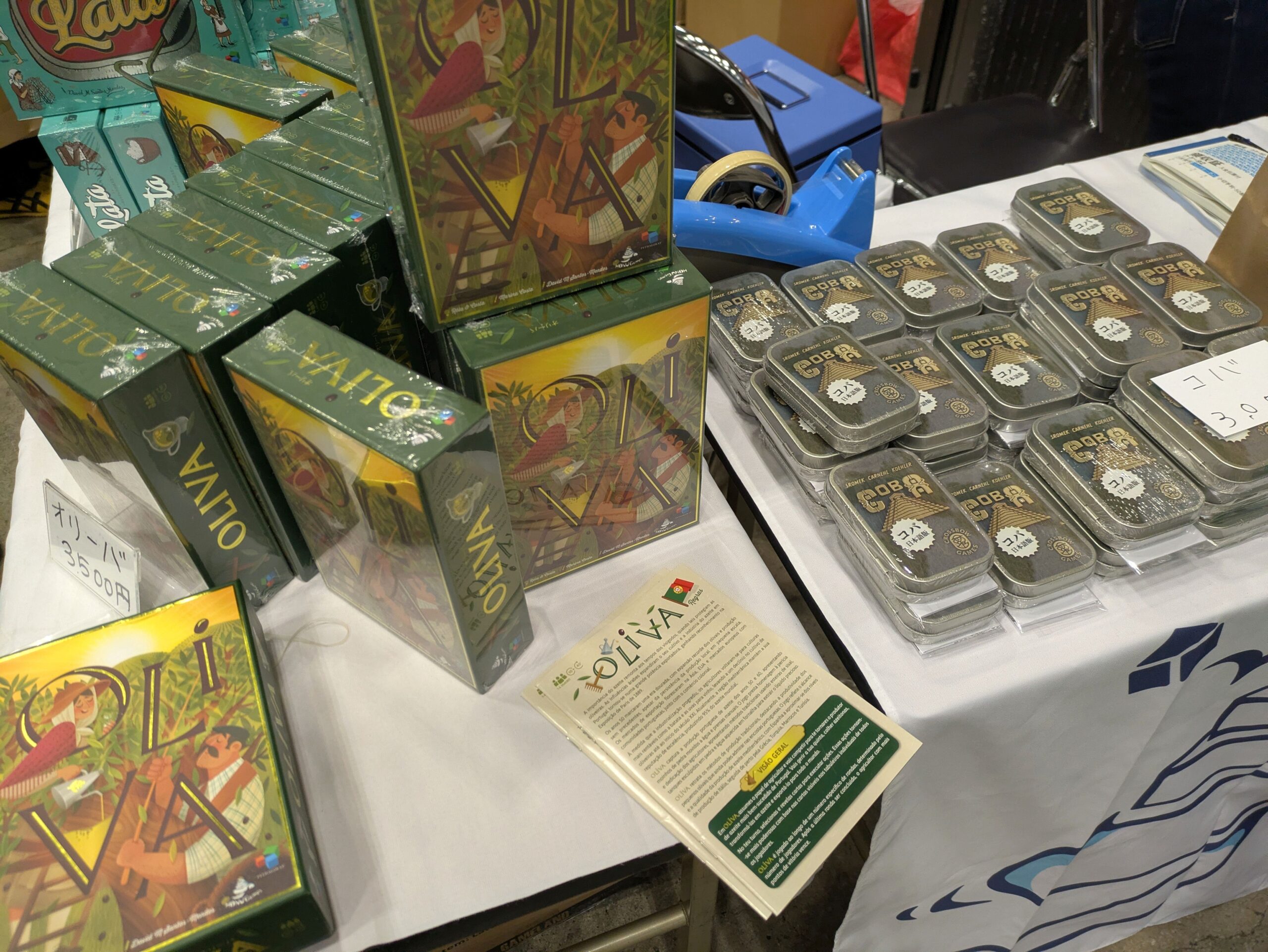 注目の海外作品をいちはやく輸入するHonu Games。近年はローカライズ作品も増えてきた。新作『コバ』『オリーバ』日本語版、和訳ルール付きの『メゼーニ』をはじめ、数々のタイトルを販売。試遊も人気だった。