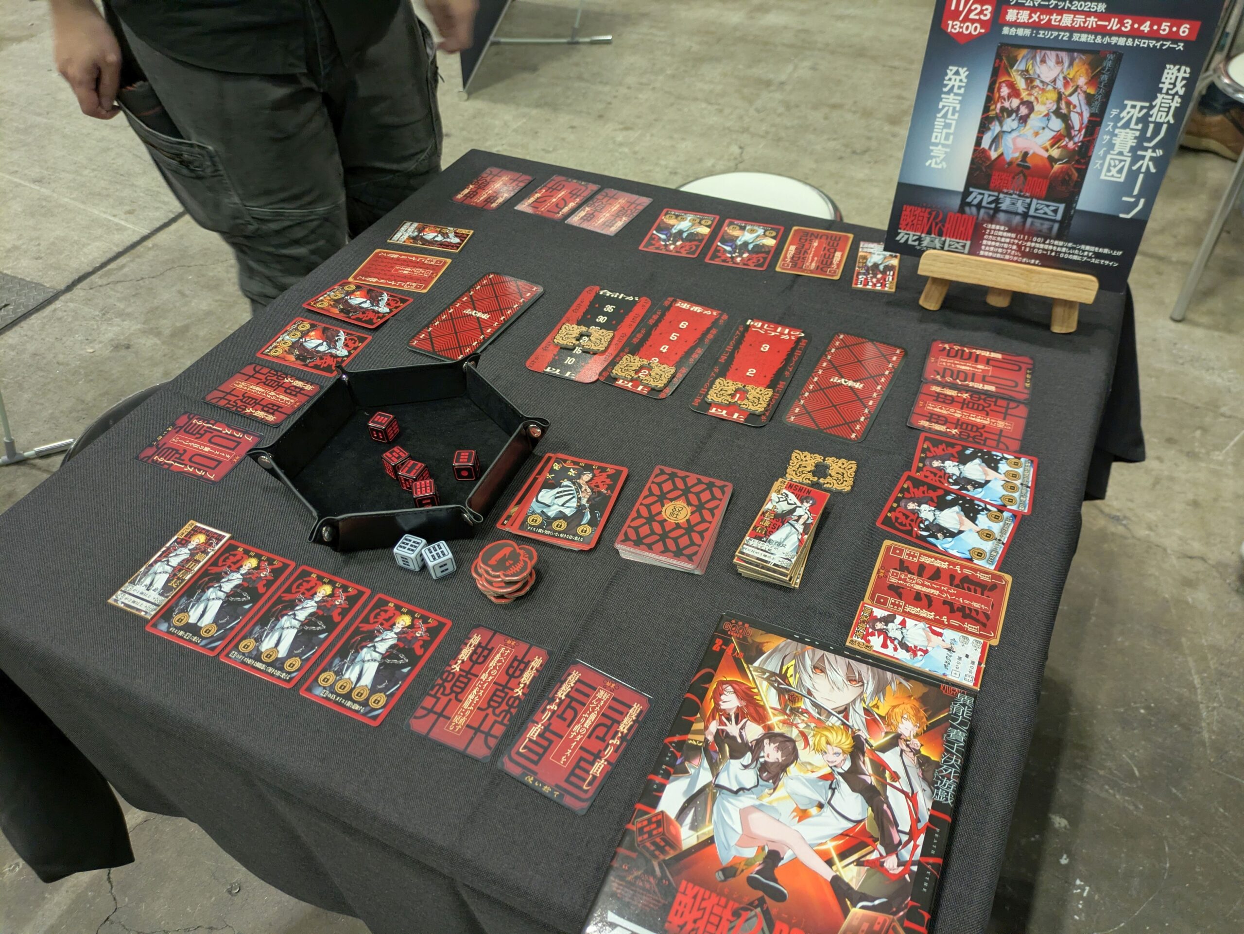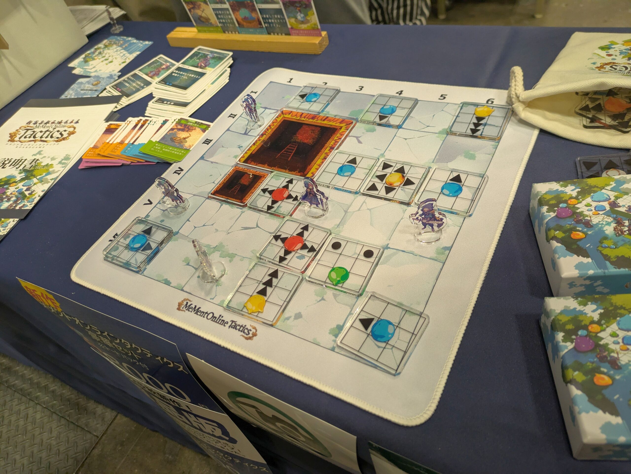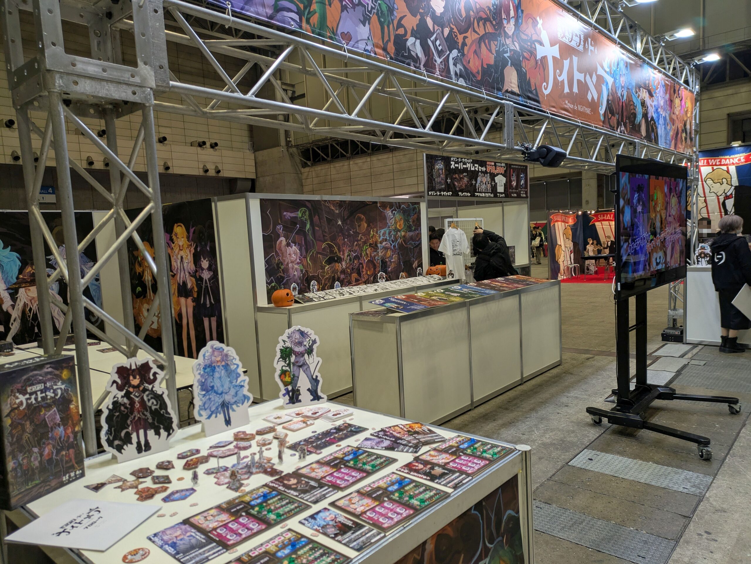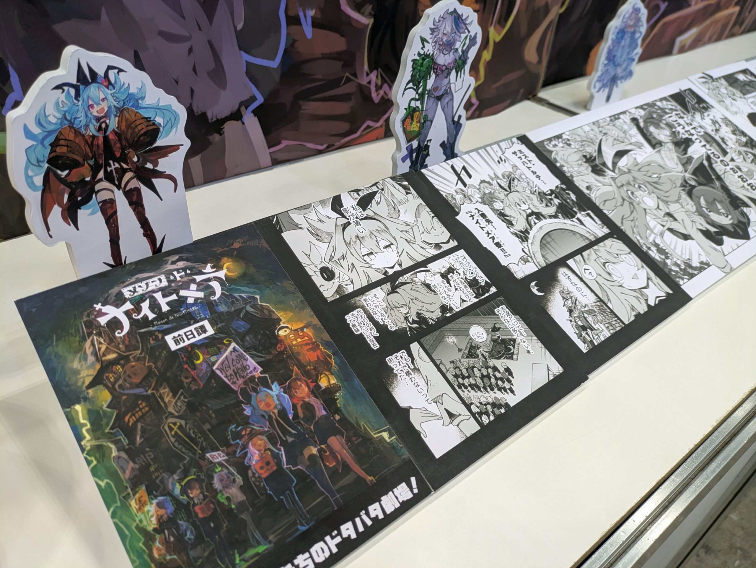 建物をお化け屋敷に改築していく最新作『メゾン・ド・ナイトメア』を出展・販売。デザインは六角えんぴつの蜂月氏。同作のイラストやコミックの展示が目を引いた。プレイマットやアクリル駒セットなどのグッズも販売された。