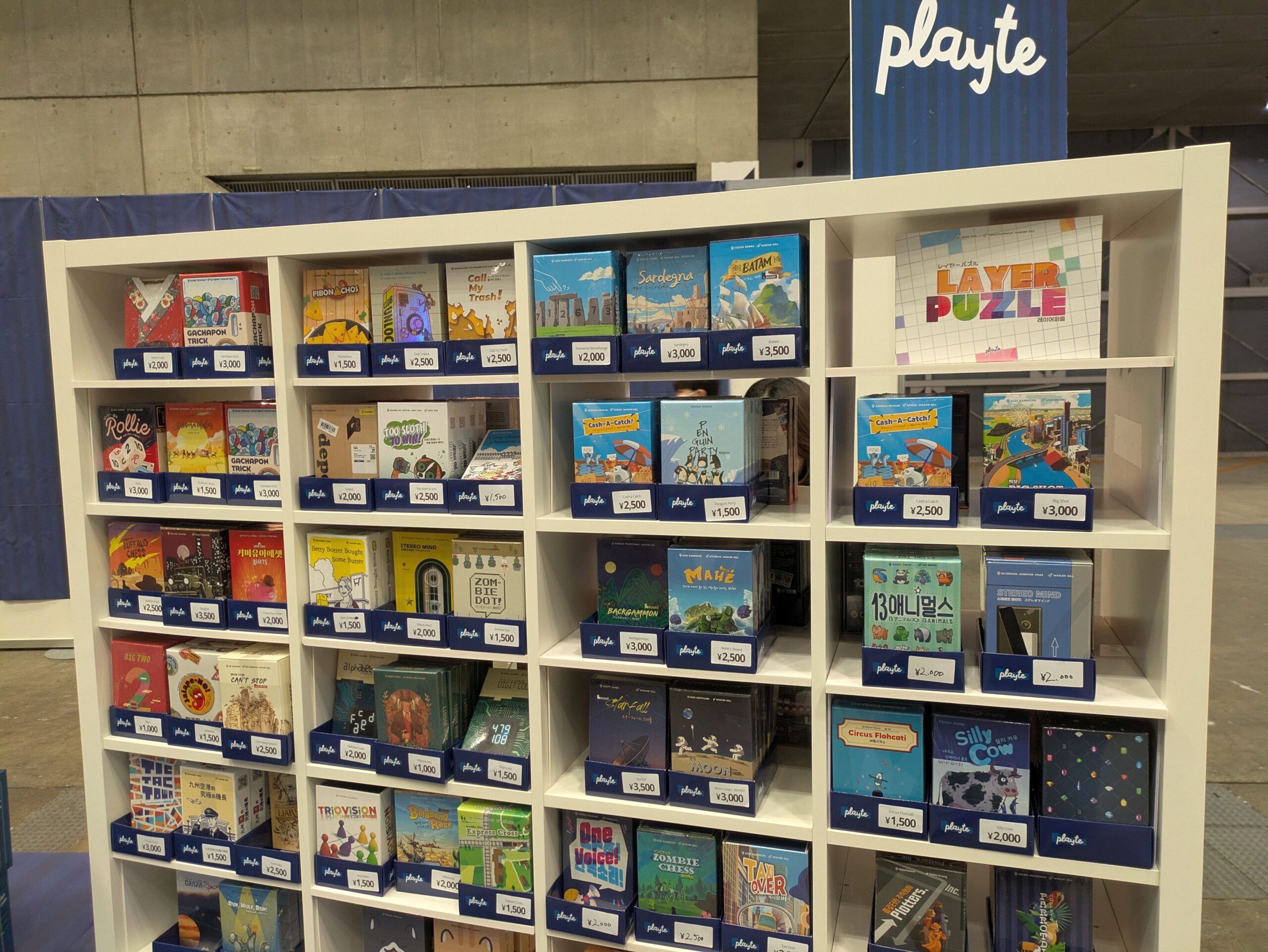 コンポーネントに定評がある韓国Playte社は、『Call my trash』『ロリー』『スターフォール』などの多くの新作に加え、同社ゲムマ名物である詰め合わせセットを販売した。超お得な内容とあって、詰め合わせセットは今回も大人気だった。