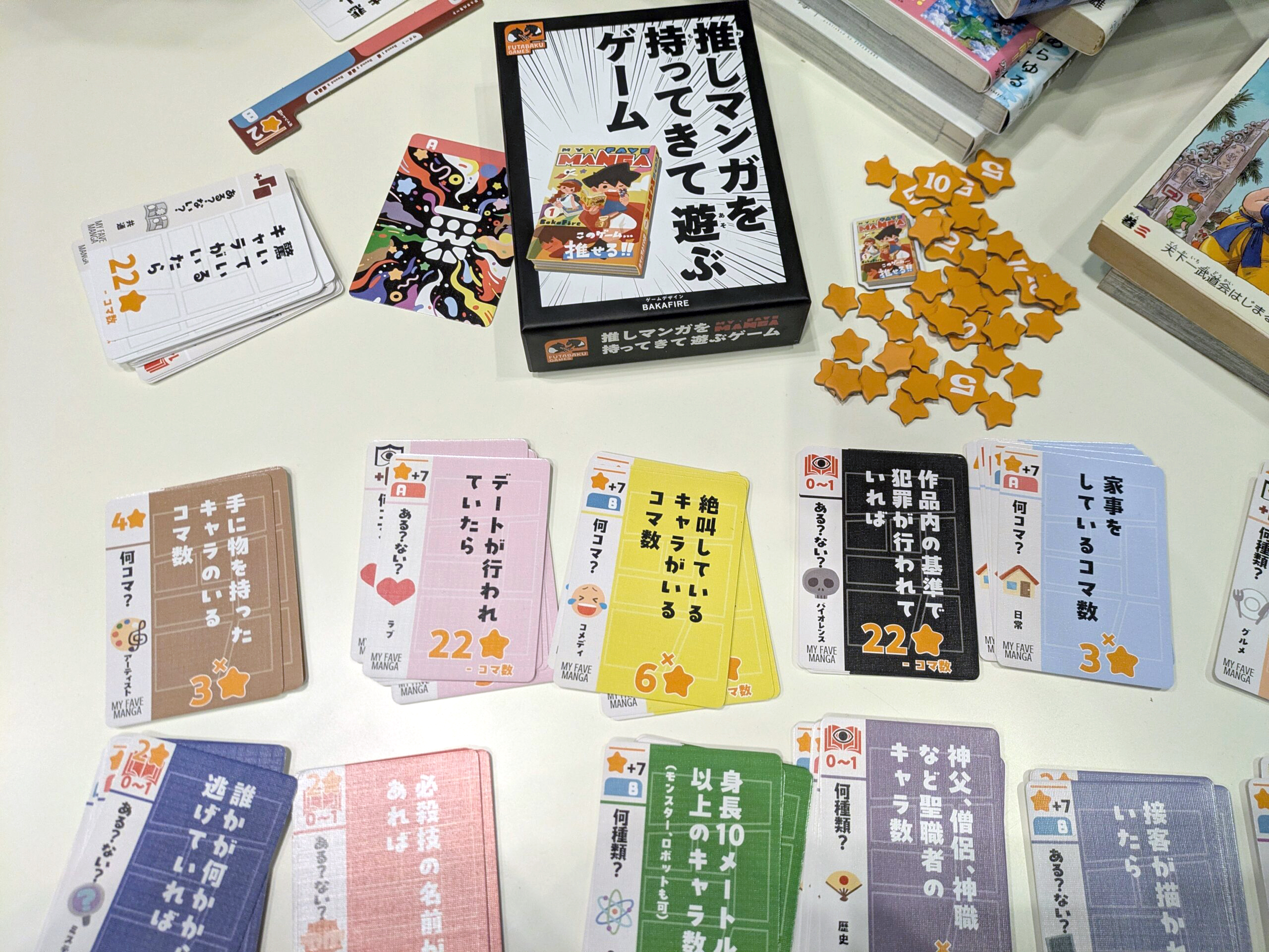 ドロッセルマイヤーズ渡辺範明氏がプロデュースする3社が合同で出展。春に『世界の終わりの大運動会-小林さんちのメイドラゴン ボードゲーム-』で注目を集めた双葉社からは、同社の4コマ漫画『かりあげクン』の4コマ目のオチを予想する『オチカルタ かりあげクン』と、好きな漫画を持ち寄り展開を予想してカードを出し合う『推しマンガを持ってきて遊ぶゲーム』(デザインはBakaFire氏)の新作2作をリリース。小学館は『戦獄リボーン 死賽図(デスサイズ)』(デザインは上杉真人氏)、ドロッセルマイヤーズからは『ドロッセルマイヤーさんの大喜利神』がそれぞれ先行販売された。