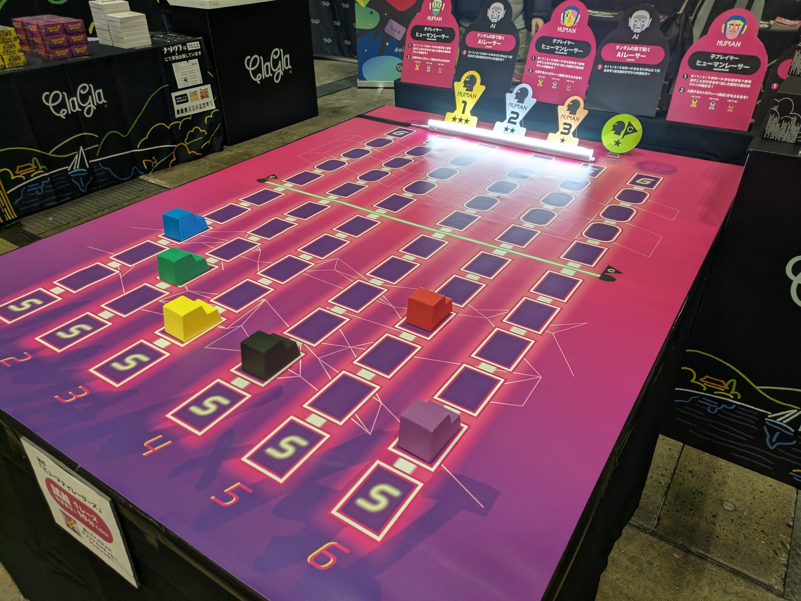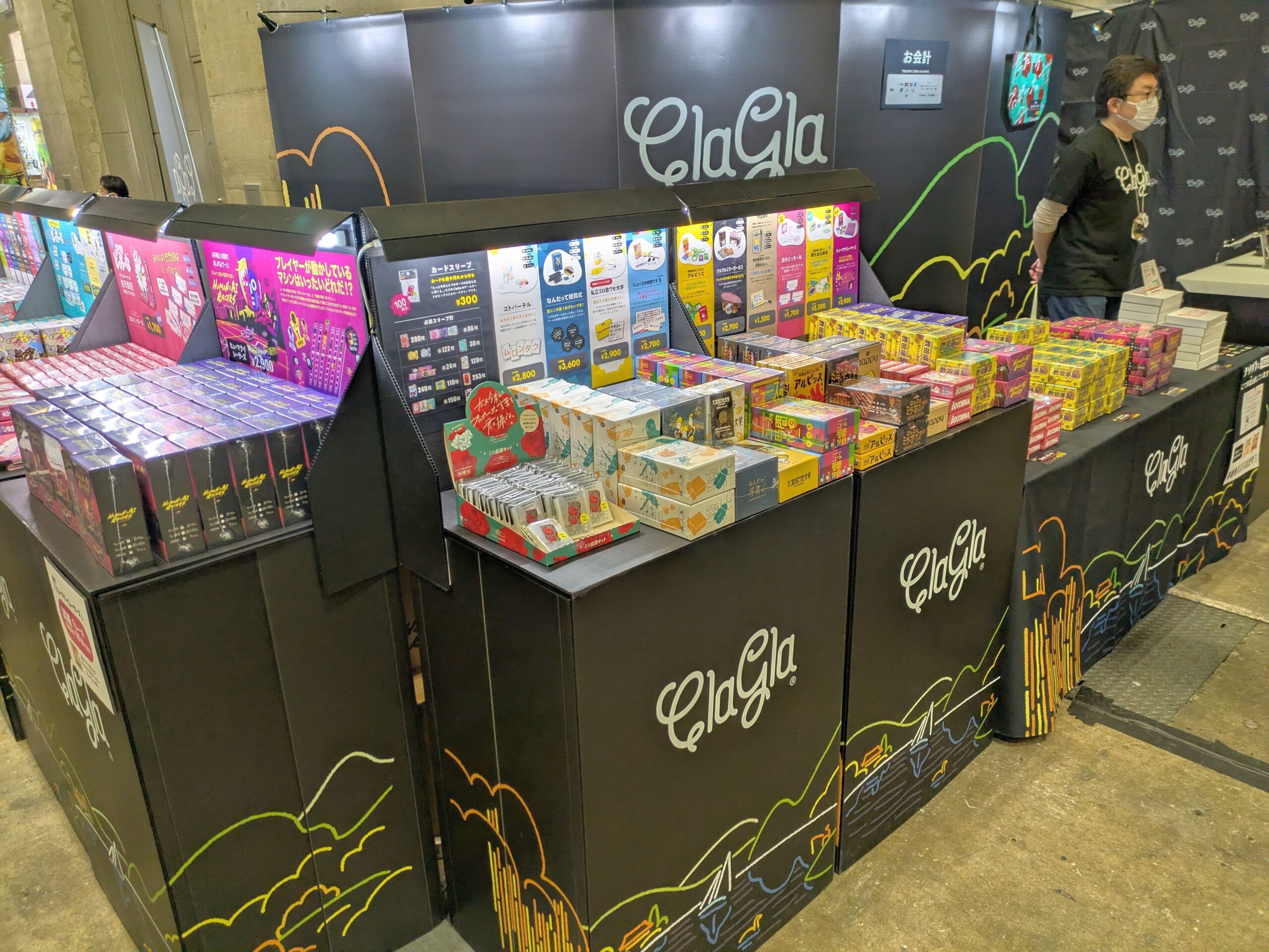 『たった今考えたプロポーズの言葉を君に捧ぐよ。』シリーズで知られる札幌のClaGla。新作として心理戦レースゲーム『ヒューマナイレーサーズ』のほか、『教祖爆誕 拡張セット ─新たなる救済─』と『恋のどっちーな』を販売した。