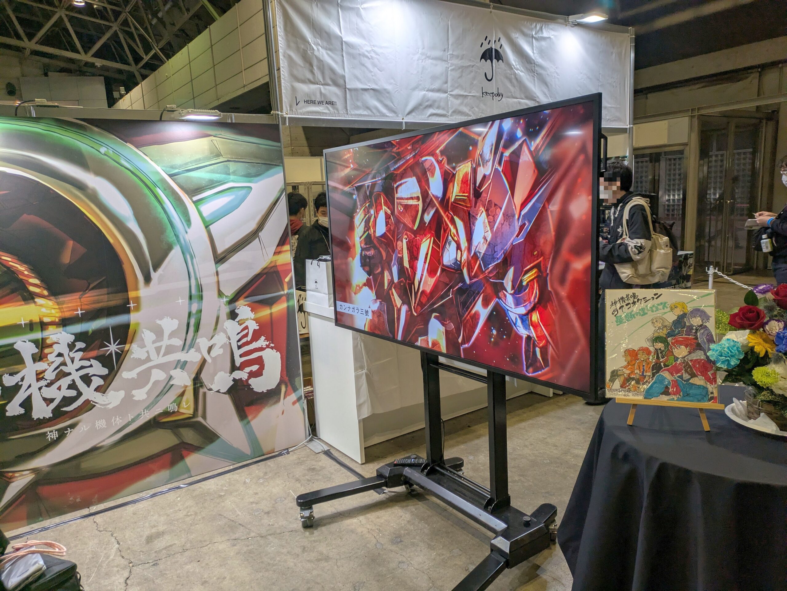 2人用対戦ゲーム『ガンナガン』が人気のKeepdryは、ロボットアニメをテーマとしたデッキ構築ゲームシリーズの新作『神機共鳴コア・コネクション 星断のエクエス 』を最速頒布。試遊も人気だった。