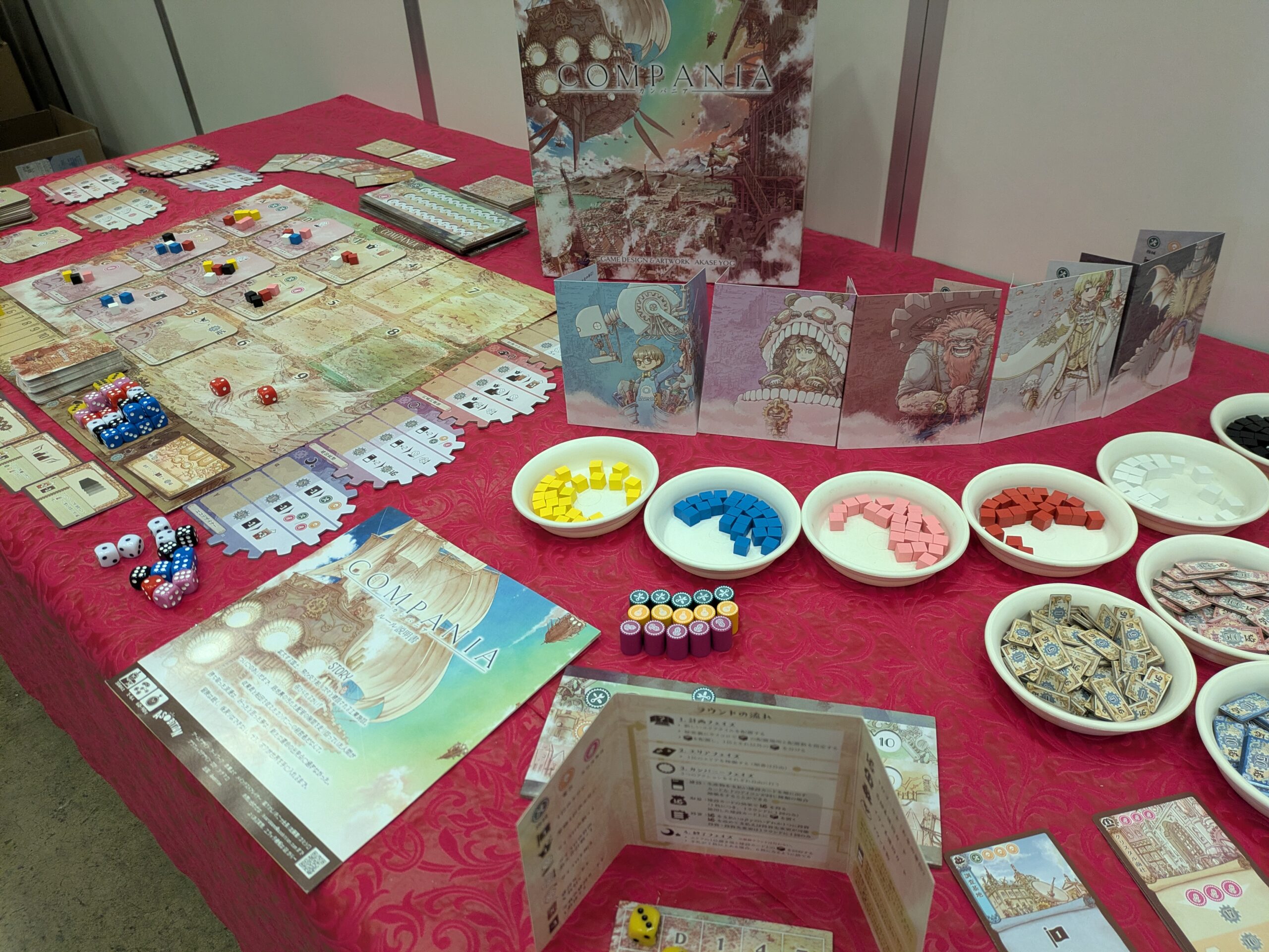 アソビションは、『沈黙の艦長』『FACTORIA(ファクトリア)』の赤瀬よぐ氏デザインの拡大再生産『COMPANIA(カンパニア)』を先行販売した。『FACTORIA』と世界観を同じにする意欲作で、クラウドファンディング実施時に人気を集めたタイトルだ。