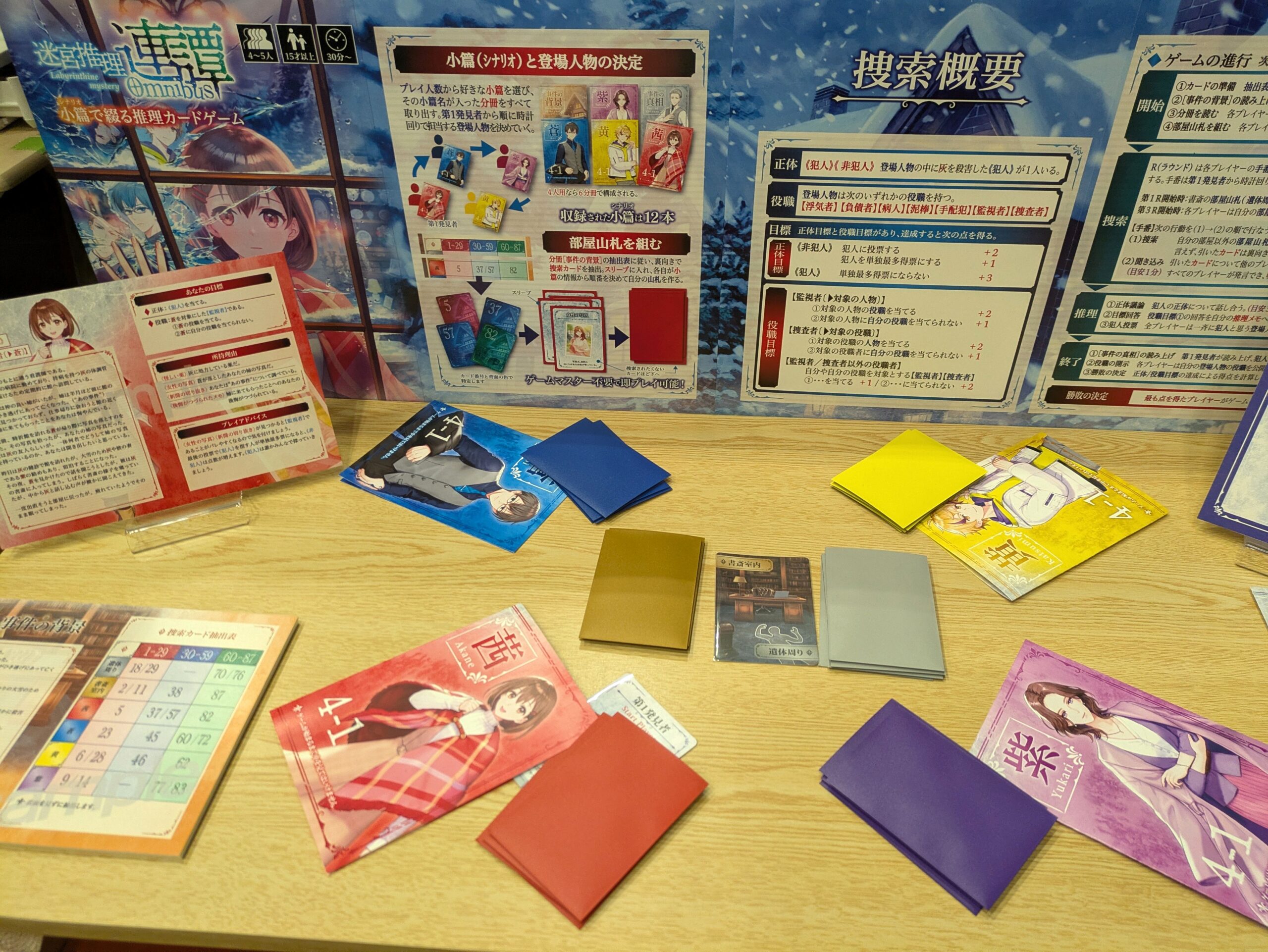 やのまんはオムニバス形式のシナリオが用意された推理カードゲーム『迷宮推理 連譚』を先行販売した。デザインは『ファームウィズブラウニーズ』や『はらぺこバハムート』のStudio GGのShun氏、AYA氏が担当している。