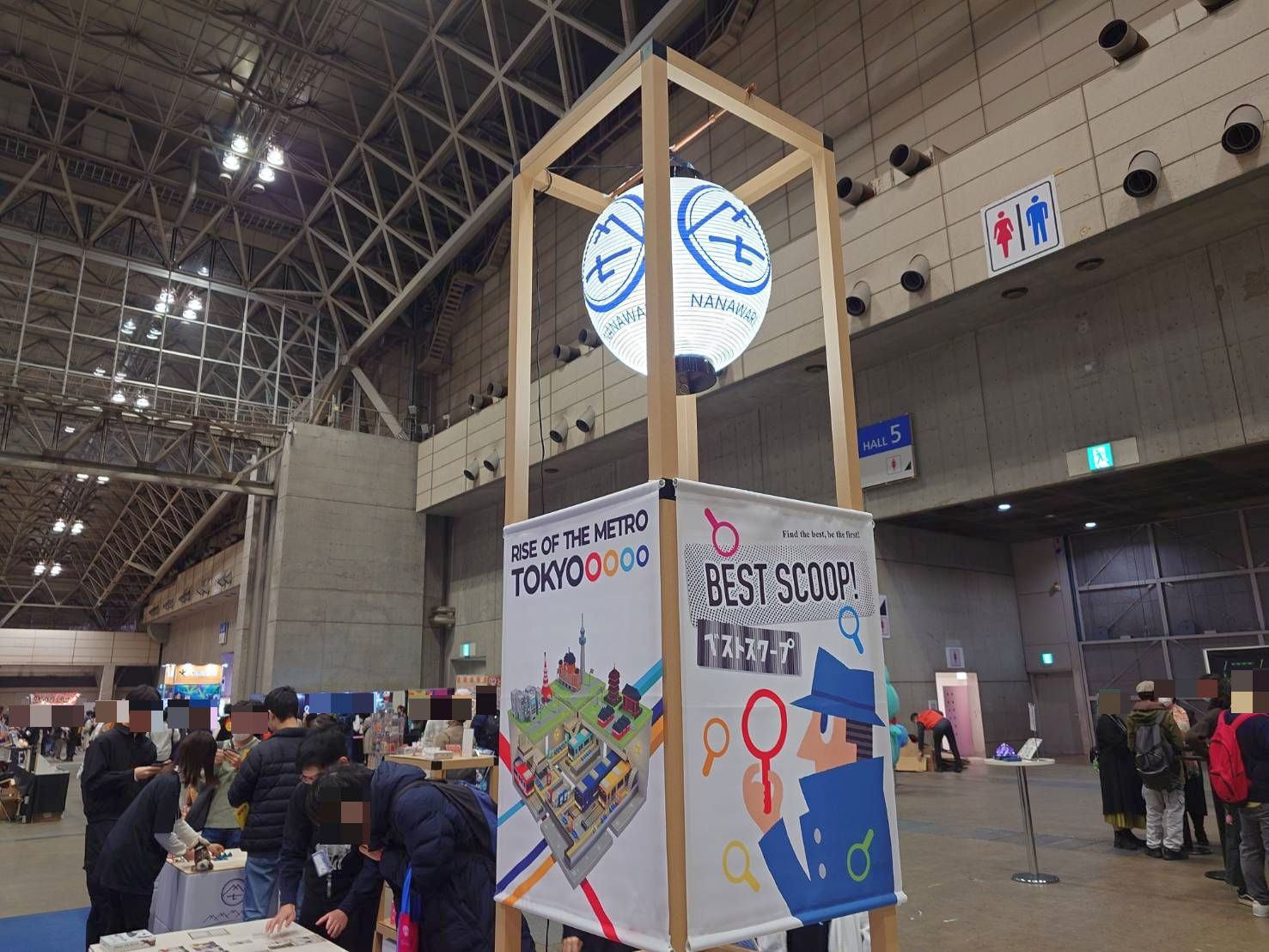 ブースは提灯が目印。ナナワリは、シンプルながらも鉄板で盛り上がる新作のバッティングゲーム『バッティング ビッグホーン』を販売した。ゲムマ春以降の新作として、『Dino Museum』と『Best Scoop!新装版』も出展された。