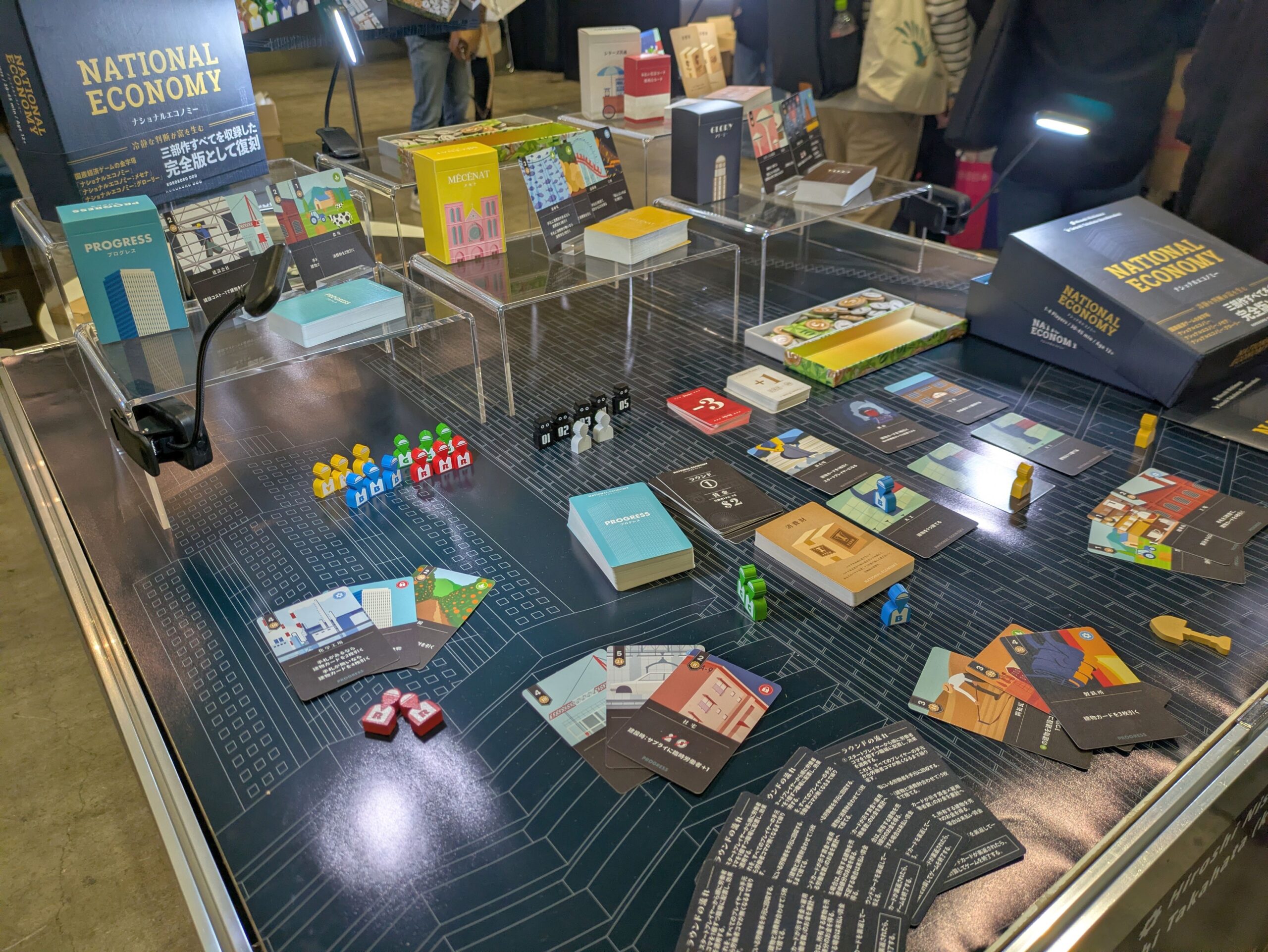 開店10周年を迎えたコロコロ堂は、一般販売が開始された『ナショナルエコノミー』を出展。名作として知られるスパ帝国のワーカープレイスメントシリーズ3部作をすべて収録しつつも価格を抑えた、お得版のパッケージとなっている。また、Steffen Spieleの2人用アブストラクトゲーム『NONAGA』『STAKKO』『RINGO』『XOK』の試遊・販売も行った。