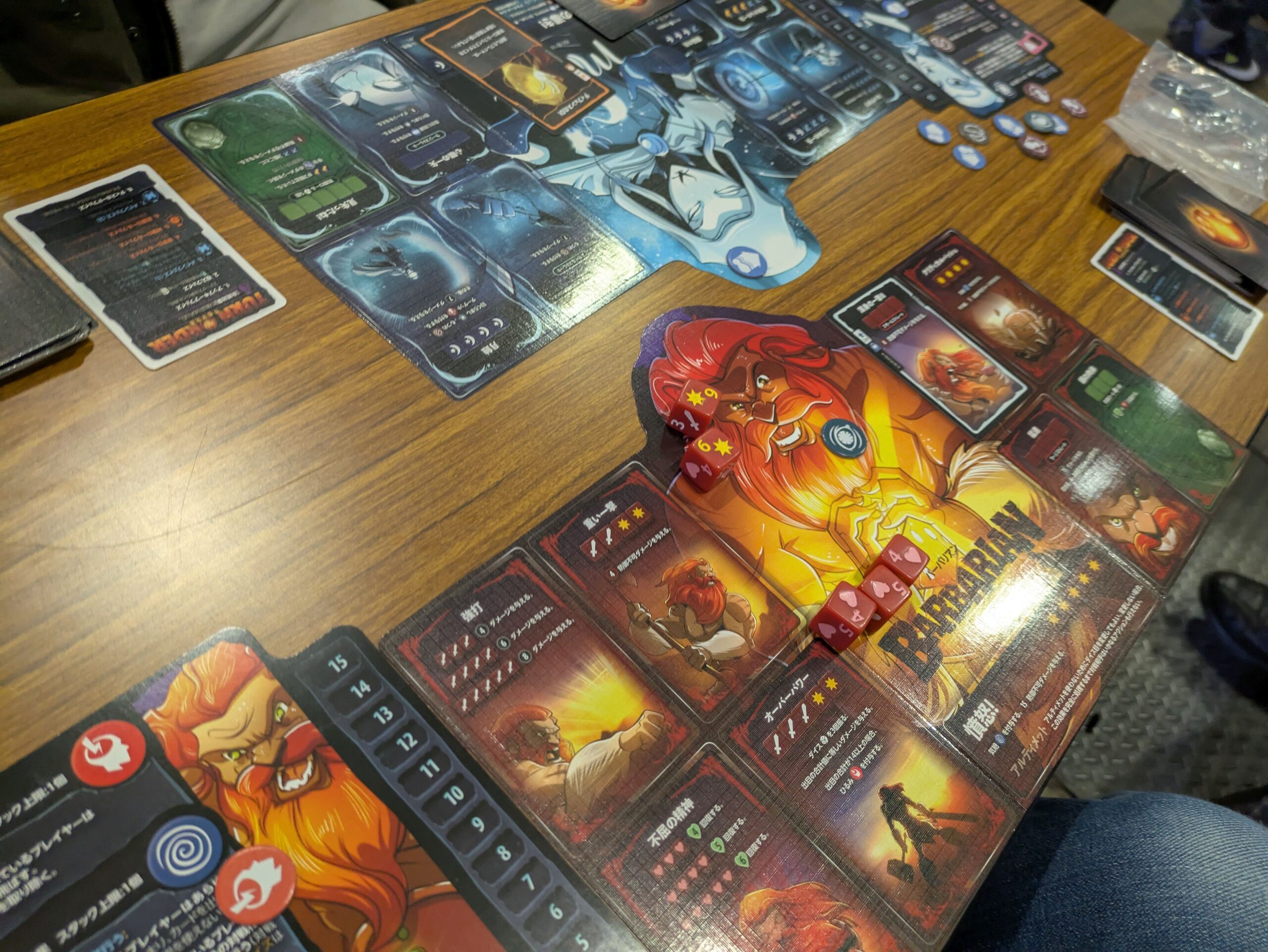 春のゲームマーケットでカードゲーム『Dobro ダブル』を販売した台湾のDexker Games(デスカー)は、今回は単独出展。秋の新作としてダイスロールによるバトルゲーム『DICE THRONE エッセンシャル エディション』“力と意志”“燃えさかる闘志”の2バージョンをリリースした。