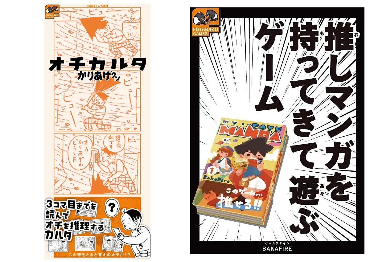 ふたばくゲームズ(双葉社)より新作2作品が発売!『オチカルタ かりあげクン』『推しマンガを持ってきて遊ぶゲーム』