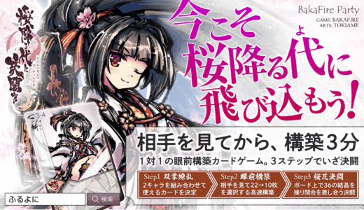 「桜降る代に決闘を」は、BakaFire Party(代表:BakaFire)が展開している、眼前構築型決闘ボードゲームです。