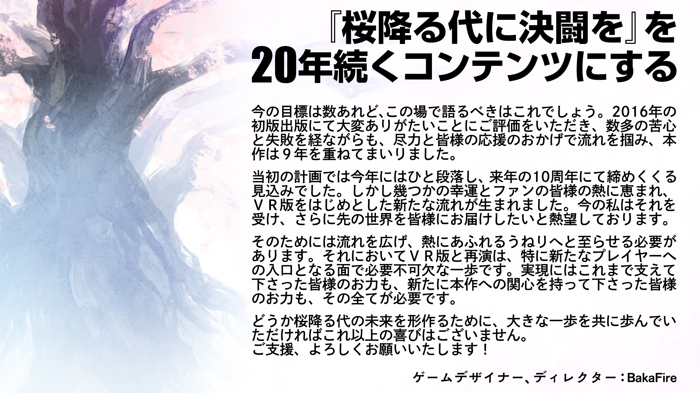 VR桜降る代に決闘を 開発支援クラウドファンディング: