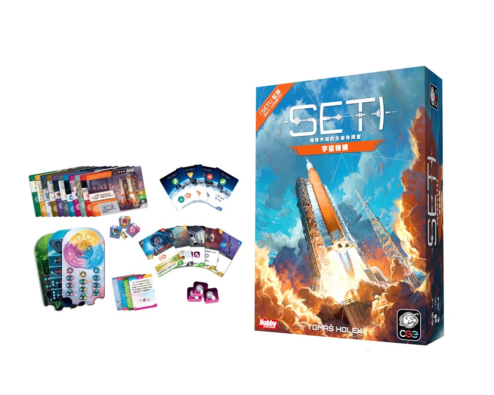 『SETI:地球外知的生命体探査』は、宇宙探査と異星人との接触を扱った大作。今回の拡張セット『宇宙機構』では、新たなカードと異星種族3種などを追加。また、独自の能力を持つ“組織”と初期状態に変化を与える“クイックスタート”の概念が加わることでプレイの幅が広がるため、ゲームのラウンド数が4ラウンドに短縮されるなどの改訂も行われた。組織は11種、クイックスタートカードは21種が用意されている。