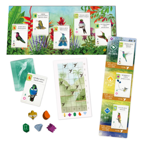 ハチドリカードを含め、新たに追加された鳥カードは大ボリュームの151枚もあります!さらに過去作のすべての拡張も同時に使用して遊べます。鳥類愛好家として色鮮やかなハチドリ達をうまく手懐け、勝利できるでしょうか?
