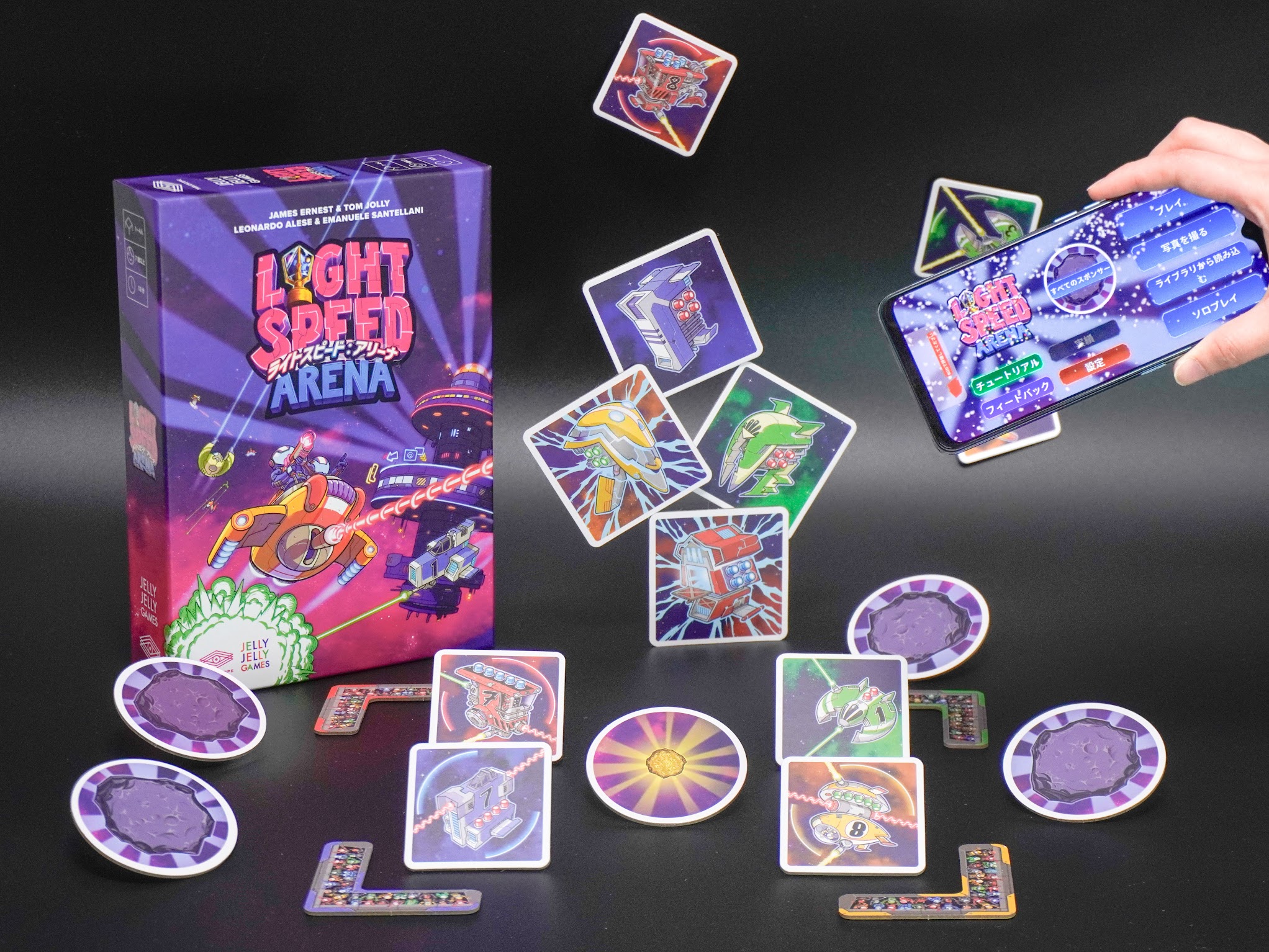株式会社ピチカートデザインは、ボードゲームブランド「JELLY JELLY GAMES」より、スマートフォンアプリを活用したリアルタイム対戦ゲーム『ライトスピード:アリーナ』日本語版を2026年3月27日(金)に発売する。価格は3,630円(税込)。