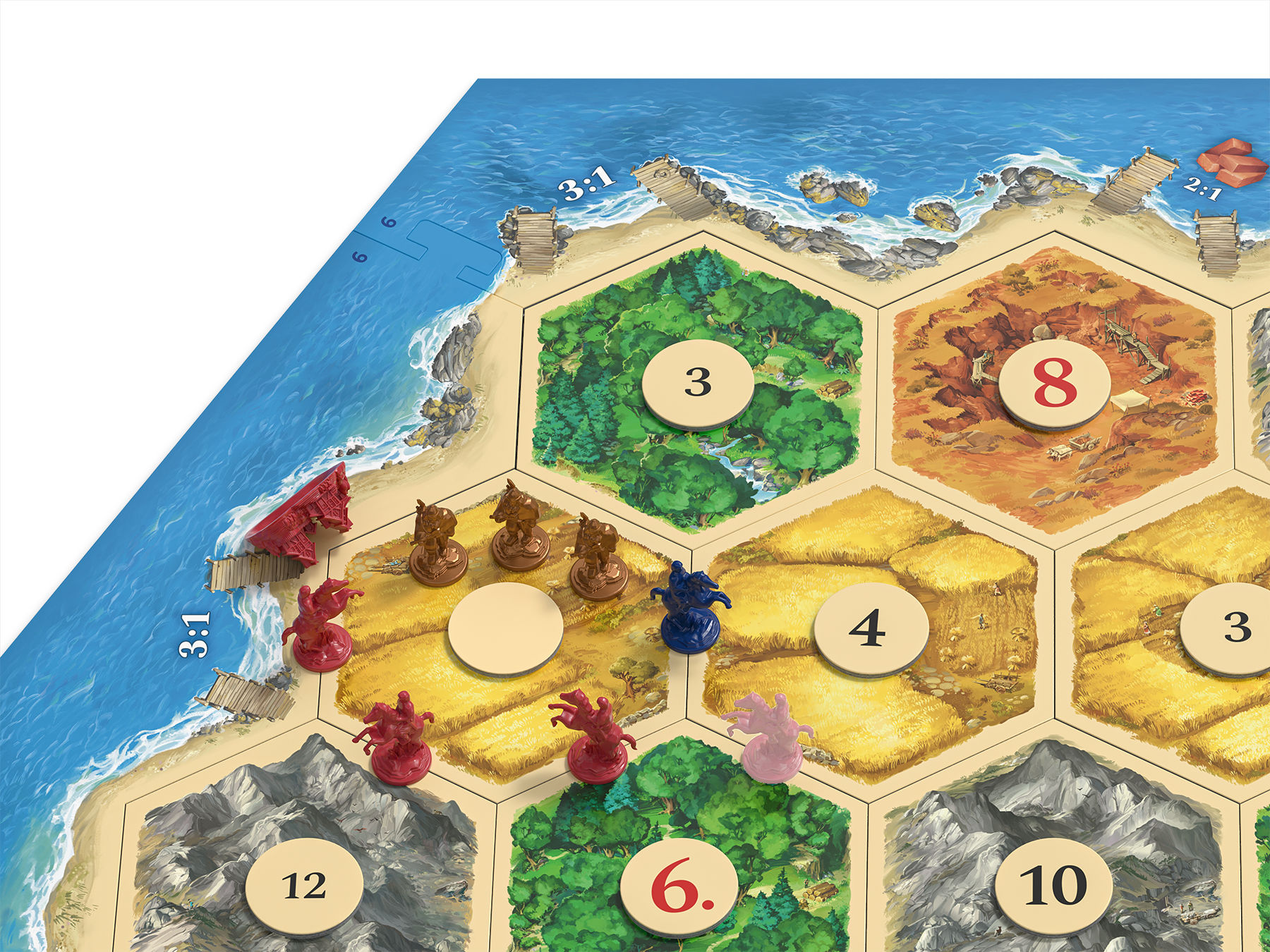 例えば、漁で魚をとって資源と交換したり、行商のルートを開拓したり、蛮族の襲撃で壊れた島を復興したりなど、従来のカタンにはなかった新しい体験が加わります。